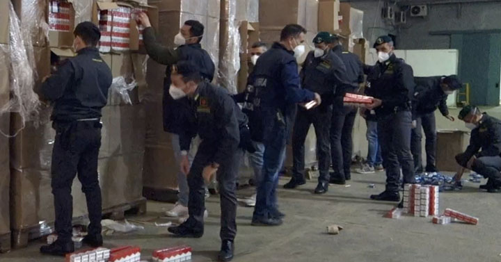 Pomezia. In un capannone trovati 82 tonnellate di sigarette contraffatte e 10 operai dell’Est tra i quali anche profughi ucraini. Arrestato il titolare e sequestrata la fabbrica