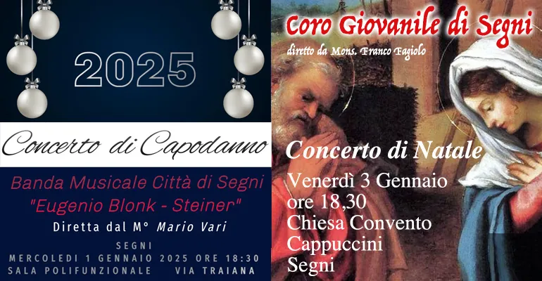 (Eledina Lorenzon) A SEGNI il nuovo anno si aprirà all’insegna della musica con due appuntamenti da non perdere. Il primo
