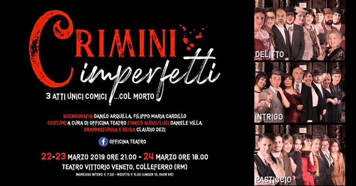 Colleferro. “Crimini Imperfetti” – 3 atti unici comici …col morto, in scena questo weekend al Teatro Comunale “Vittorio Veneto”