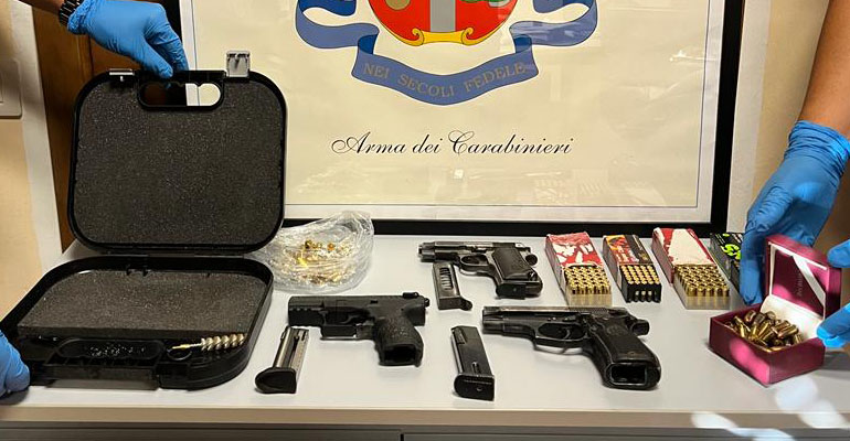 Guidonia Montecelio. In casa deteneva illecitamente tre pistole e circa 300 proiettili. 36enne arrestato dai Carabinieri