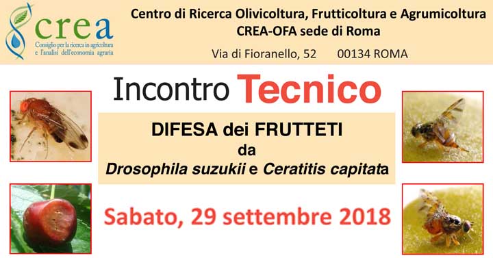Roma. Incontro Tecnico e Mostra del 29 Settembre presso il Crea: «Difesa dei frutteti da Drosophila suzukii e Ceratitis capitata»
