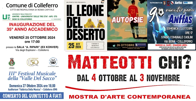 Colleferro. 25-26-27-28 Ottobre. Una “quattro giorni” densa di iniziative. Ecco il programma