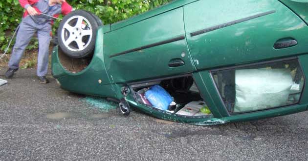 Colleferro. Spettacolare carambola sulla Via Casilina. L’auto finisce cappottata al centro della strada. La signora alla guida ne esce illesa… [Foto]
