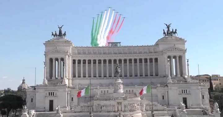 25 Aprile 2020. I cieli di Roma segnati dal tricolore della Pattuglia Acrobatica Nazionale. Il Video