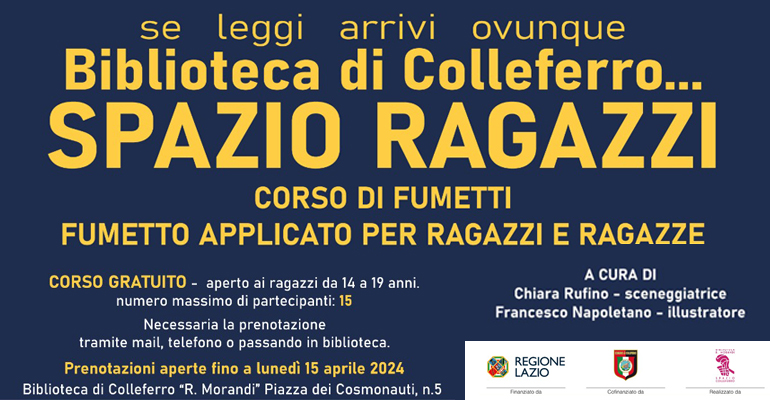 Colleferro. “Fumetto applicato per ragazzi e ragazze” un corso gratuito dedicato a ragazzi tra i 14 ed i 19 anni organizzato dalla Biblioteca Comunale