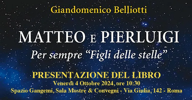 Roma. Presentazione del libro Matteo e Pierluigi – Per sempre “Figli delle stelle”. 4 Ottobre ore 10,30 Sala Mostre & Convegni Via Giulia 142
