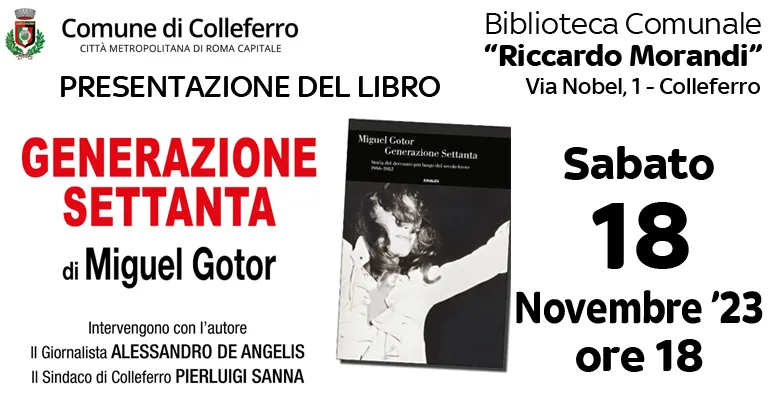 Colleferro. Sabato 18 Novembre alle 18 nella Biblioteca Comunale “R. Morandi” verrà presentato il libro “Generazione Settanta” di Miguel Gotor