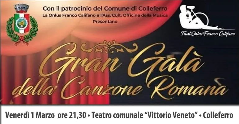 Colleferro. Al Teatro comunale Vittorio Veneto Venerdì 1 Marzo alle ore 21.30 in scena il “Gran Galà della Canzone Romana”