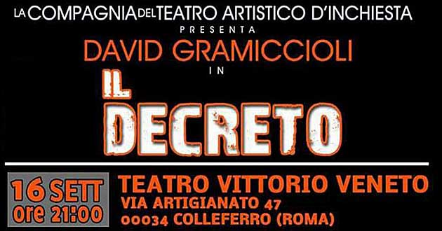 COLLEFERRO (RM) – A seguito del grande successo registrato Sabato sera al Teatro Vittorio Veneto per lo spettacolo teatrale “Il