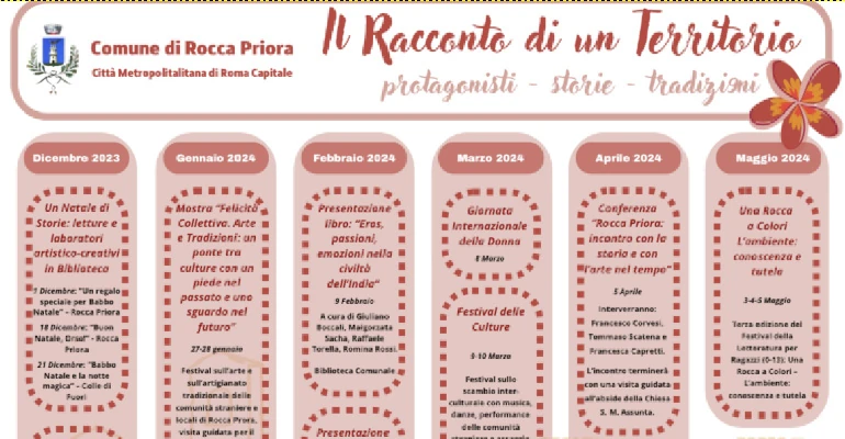 ROCCA PRIORA (Luciana Vinci) – “Il racconto di un territorio” in otto tappe in una carrellata di appuntamenti che, da gennaio