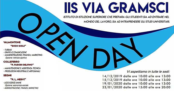 VALMONTONE – L’Istituto d’Istruzione Superiore di Via Gramsci organizza quattro giornate di orientamento “Open Day”, nelle tre sedi, rivolte agli