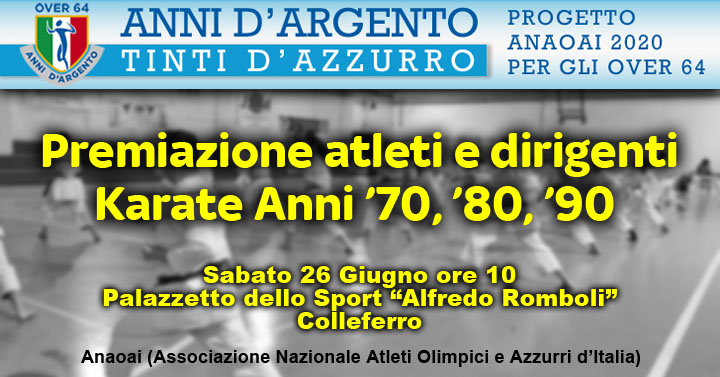 Colleferro. Karate. Sabato 26 Giugno ore 10 al Palazzetto dello Sport “Anni d’Argento Tinti d’Azzurro”. Premiazione di atleti e dirigenti nazionali degli anni ’70, ’80, ’90