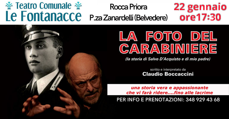 Rocca Priora. Al Teatro Comunale “Le Fontanacce” è partita la nuova stagione teatrale 2023. Domenica 22 Gennaio alle ore 17.30, debutterà lo spettacolo “La foto del carabiniere”