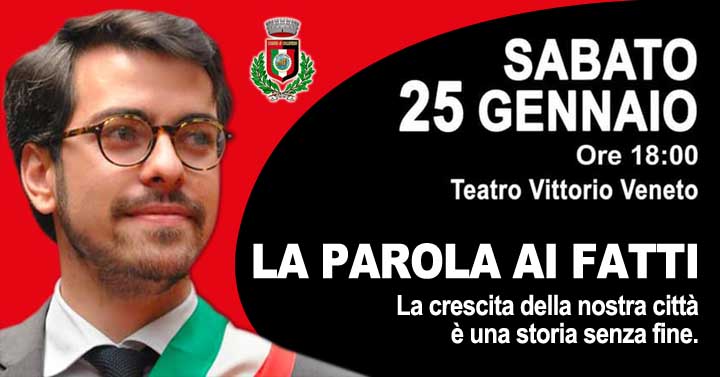 COLLEFERRO – Domani, Sabato 25 Gennaio, alle ore 18, al Teatro Comunale Vittorio Veneto di Colleferro, il Sindaco Pierluigi Sanna