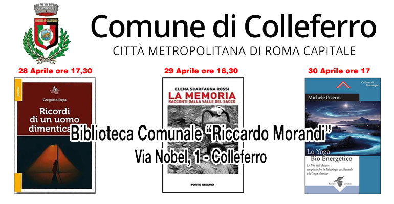 COLLEFERRO – Un weekend particolarmente denso di presentazioni di libri alla Biblioteca Comunale “Riccardo Morandi” di Colleferro. Ecco il programma