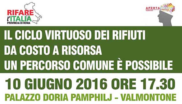 Valmontone. La strategia dei Rifiuti Zero e le buone pratiche ambientali di Capannori (Lu), Venerdì 10 Giugno a Palazzo Doria Pamphilj