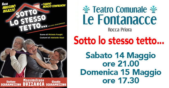 Rocca Priora. Sabato 14 e Domenica 15 Maggio: “Sotto lo stesso tetto” al Teatro Comunale Le Fontanacce