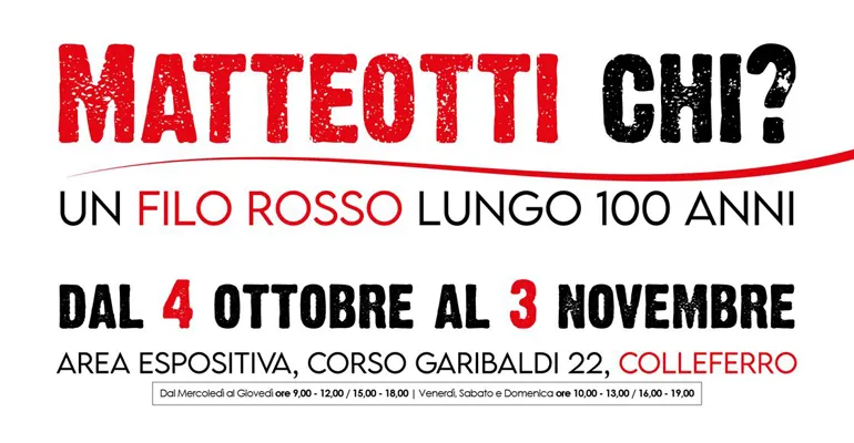Colleferro. Mostra “Matteotti chi?, un filo rosso lungo cento anni – Arte nella memoria”. Gli eventi del prossimo weekend