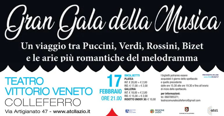 Colleferro. In occasione della festa di San Valentino Sabato 17 Febbraio alle ore 21 “Gran Galà della Musica” al Teatro “Vittorio Veneto”