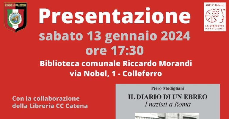 Colleferro. Sabato 13 Gennaio presso la Biblioteca Comunale R. Morandi, verrà presentato il libro di Piero Modigliani “Il diario di un ebreo. I nazisti a Roma”