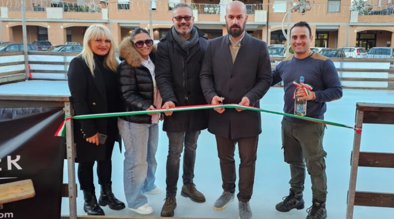 Colleferro. Finalmente aperta la pista di pattinaggio su ghiaccio a Piazza Nassiriya, l’inaugurazione lo scorso 7 Dicembre