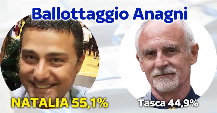 Ad Anagni sarà ballottaggio nel centrodestra tra i Daniele, Natalia e Tasca, che hanno ottenuto rispettivamente il 39,69% ed il 20,56% dei voti