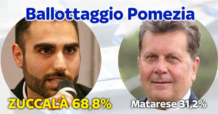 A Pomezia Adriano Zuccalà con il 68,8% riporta il Movimento 5 Stelle alla guida della città battendo il candidato del centrodestra Pietro Matarese (31,2%)