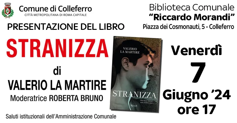 Colleferro. Venerdì 7 Giugno alle ore 17 nella Biblioteca Comunale R. Morandi, presentazione del libro “Stranizza” di Valerio La Martire
