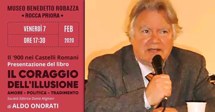 Rocca Priora. Venerdì 7 Febbraio Aldo Onorati torna al Museo Robazza con il suo romanzo storico popolare “Il Coraggio dell’Illusione”: Amore – Politica – Tradimento