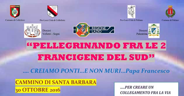 Colleferro | Paliano. “Pellegrinando… fra le 2 Vie Francigene del Sud”. Domenica 30 Ottobre il “Cammino di Santa Barbara”
