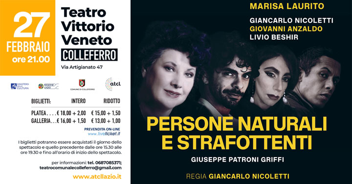 COLLEFERRO – Terzo appuntamento con la Stagione Teatrale del Teatro “Vittorio Veneto” di Colleferro: andrà in scena Domenica 27 Febbraio