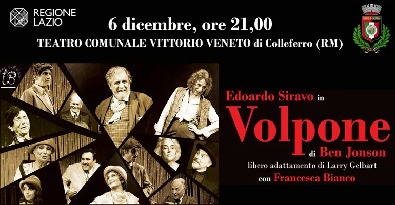 Colleferro. Venerdì 6 Dicembre alle 21 al Teatro comunale Vittorio Veneto in scena lo spettacolo “Il Volpone” di Ben Jonson