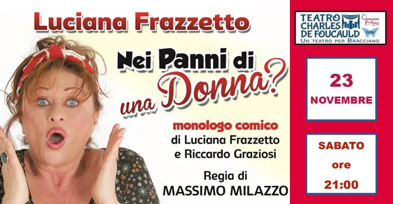 Bracciano. “Nei panni di una donna” monologo di e con Luciana Frazzetto. Sabato 23 Novembre alle ore 21 al Teatro Charles de Foucauld