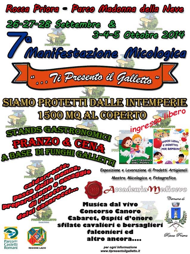 ROCCA PRIORA (RM) – Si concluderà domani, Domenica 5 Ottobre 2014, la 7a Manifestazione Micologica “… Ti presento il Galletto”,