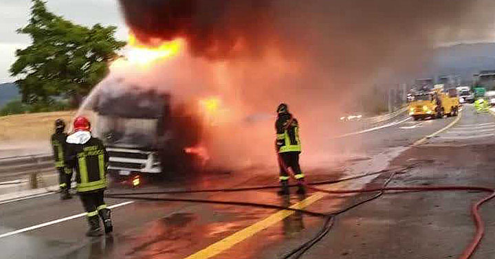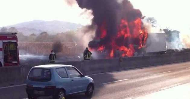 Tir in fiamme alla barriera autostradale di Roma Est. Conducente in salvo. Intervenuti i Vigili del Fuoco