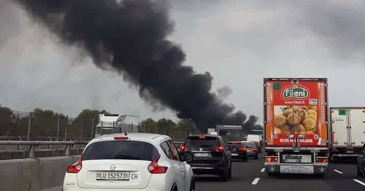 [Aggiornamento] Chiusa l’autostrada A1 a causa di un incendio tra Guidonia Montecelio e l’allacciamento con la A24. Code e disagi per gli automobilisti
