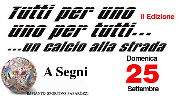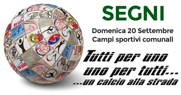 Segni. Domenica 24 Settembre torna l’evento sportivo “Tutti per uno, uno per tutti… Un calcio alla strada”. Siamo alla III Edizione