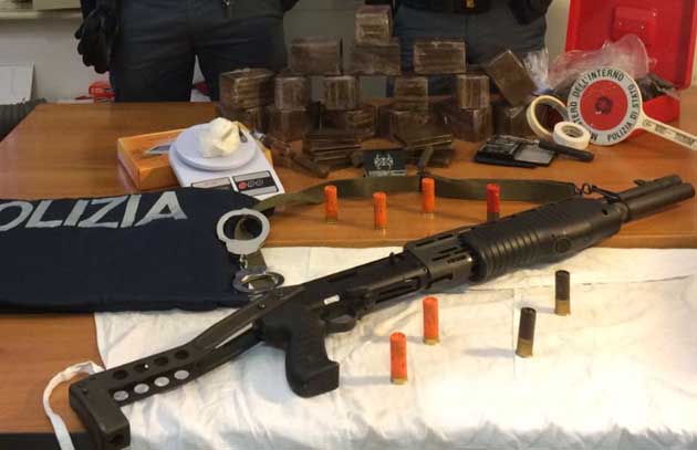 ROMA – Quasi 9 kg di hashish, 100 grammi di cocaina ed un micidiale fucile a pompa con matricola abrasa