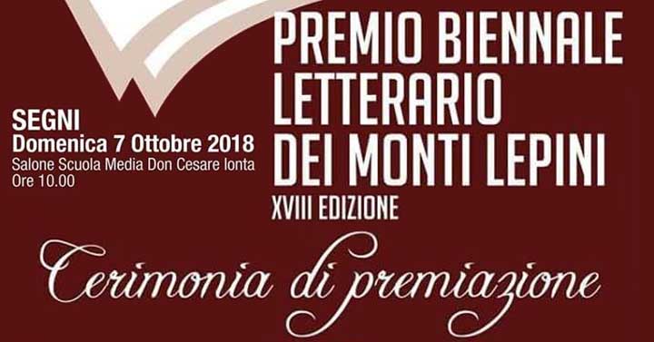 Segni. Domenica 7 Ottobre la premiazione dei vincitori del XVIII Premio Letterario Biennale Internazionale Monti Lepini