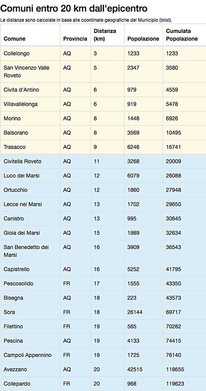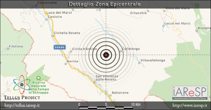 In particolare la Sala Sismica dell’Istituto Nazionale di Geofisica e Vulcanologia di Roma ha localizzato l’epicentro dell’attività sismica a 3 Km ad Ovest di Collelongo, ad una profondità di 17 km e con coordinate geografiche: latitudine 41.88, longitudine 13.55.