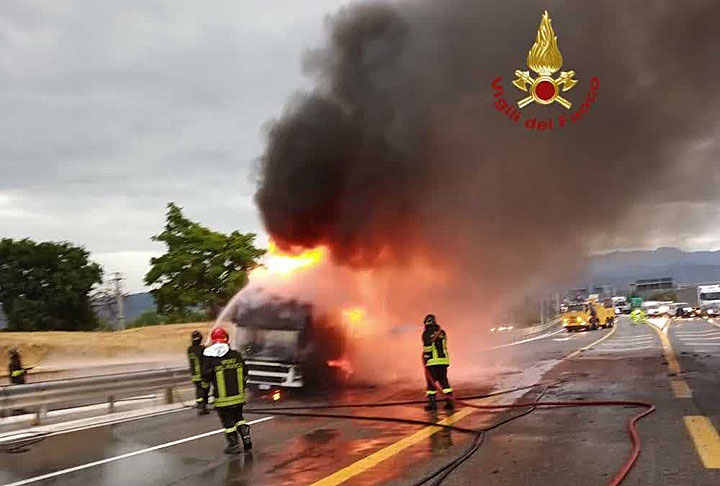 Il conducente del mezzo, resosi conto di quanto stava accadendo, è riuscito ad accostare sulla corsia di emergenza, scendere dal mezzo ed a mettersi in salvo.