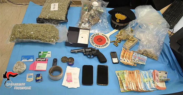 Torrice. In casa aveva un revolver “Smith & Wesson” rubato, 1,6Kg di hashish ed 1Kg di marijuana. 30enne di Alatri arrestato dai Carabinieri