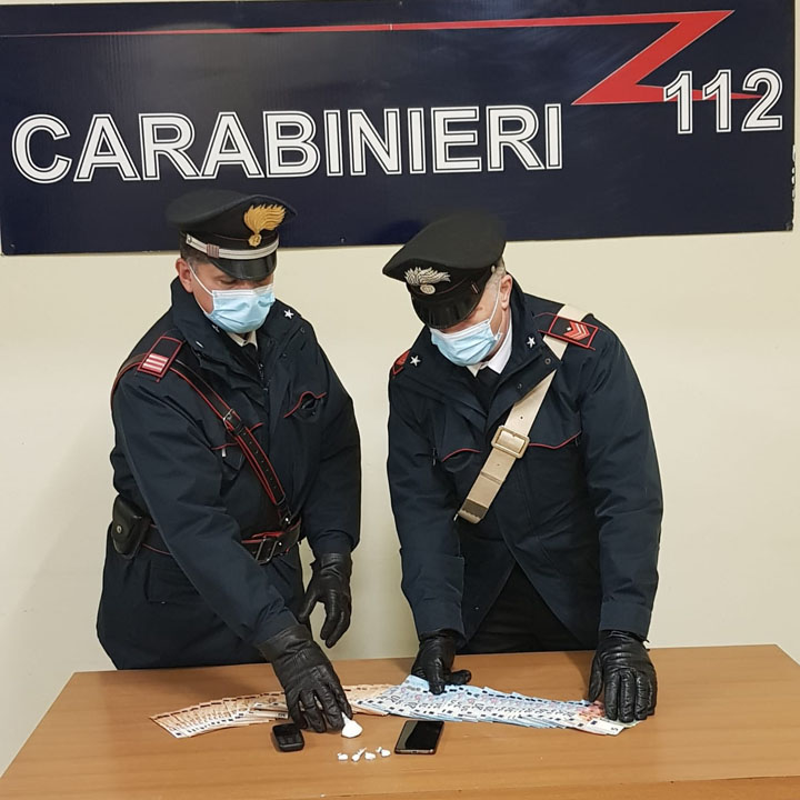Anche la perquisizione presso la sua abitazione ha portato i militari dell’Arma al rinvenimento di un’altra dose della stessa sostanza e di altri 840 euro.
