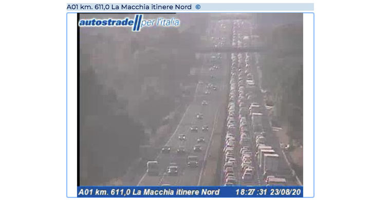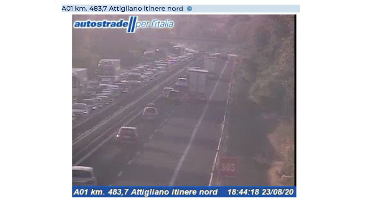 Traffico. Code a tratti lunghe fino a 3 Km sull’A1 in direzione Roma, da nord e da sud. Ingorghi tra Frosinone e Colleferro e tra Attigliano ed Orte