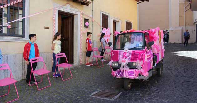 VALMONTONE (RM) – Lo scorso Sabato 13 Maggio Valmontone si è svegliata tutta colorata di rosa: panchine, alberi, viali, giardini: tutto era addobbato da tante mattonelle rosa, simbolo della ricostruzione di vite che incrociano sul loro percorso la malattia e più precisamente il tumore al seno. Organizzata dall’Associazione “Il Girasole”, con il Patrocinio dell’Amministrazione Comunale, il contributo di un istituto di credito locale ed in collaborazione con le associazioni del luogo.
