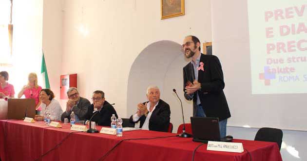 La manifestazione si è poi spostata all’interno della Sala Conferenze del Palazzo Doria Pamphilj per una interessante conferenza sul tema della prevenzione, con interventi mirati e di grande interesse. Il Dr. Paolo Grimaldi ha illustrato lo sviluppo della malattia sul territorio regionale ed il Programma di screening mammografico offerto dalla Asl Rm5, a seguire il dr. Valerio Napolitano ha dettagliatamente illustrato l’importanza della partecipazione al programma di screening ginecologico carcinoma cervice uterina e il suo invito alla vaccinazione. Il Dr. Roberto Viganò, medico di base, ha invitato tutti ad adottare sani stili di vita e seguire una corretta alimentazione, mentre il Dott. Giuseppe Cristina, Dir. Medico del Rep. Oncologia dell’Ospedale di Colleferro ha ribadito come prevenzione e diagnosi precoce siano due strumenti importanti per la salute: l’autopalpazione del seno deve divenire per ogni donna prassi comune, così da avvertire con immediatezza ogni variazione ed intervenire con esami appropriati.