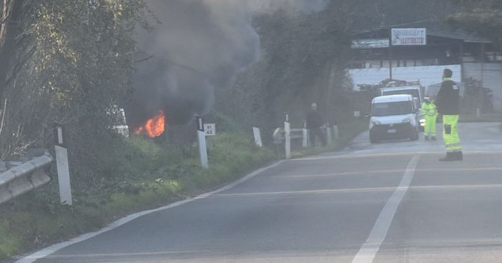 VALMONTONE – Poco prima delle ore 14 di oggi, 21 Dicembre, su Via Casilina, appena fuori il centro abitato di Valmontone in direzione Colleferro, un’auto, parcheggiata su una piazzola complanare alla sede stradale, ha preso fuoco.