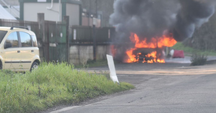 Valmontone. Auto in fiamme su una complanare della Casilina. Intervenuti i Vigili del Fuoco. Traffico bloccato