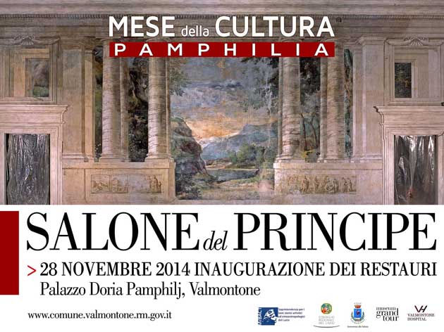 Dopo un mese di eventi e presentazioni, tra cui i principali progetti di rilancio culturale della città (dalla nuova biblioteca comunale fino alla ristrutturazione e riapertura dell’ex teatro Valle), il mese della Cultura Pamphilia avrà il suo culmine Venerdì 28 Novembre con l’inaugurazione della Sala del Principe, fresca dei nuovi interventi di restauro eseguiti dalla Soprintendenza per i Beni storici artistici ed etnoantropologici del Lazio che hanno riportato alla piena leggibilità le pareti affrescate da Gaspard Dughet e Guillaume Courtois, caratterizzate da motivi a trompe l’oeil che aprono su ampi e maestosi scorci paesistici inquadrati da quinte arboreee, specchi d’acqua ed aspri profili montuosi.