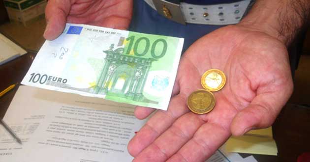 Uno dei commercianti che stava subendo l’ennesimo pagamento con banconota falsa, accortosi della falsità della banconota l’ha restituita all’interessato ed ha avvisato i Carabinieri della locale Stazione che hanno recuperato la banconota e, grazie alla perquisizione eseguita all’interno della loro auto, hanno rinvenuto altre due banconote false delle stesso taglio e oltre 50 monete false di due euro, con una contraffazione sin ad oggi mai catalogata.